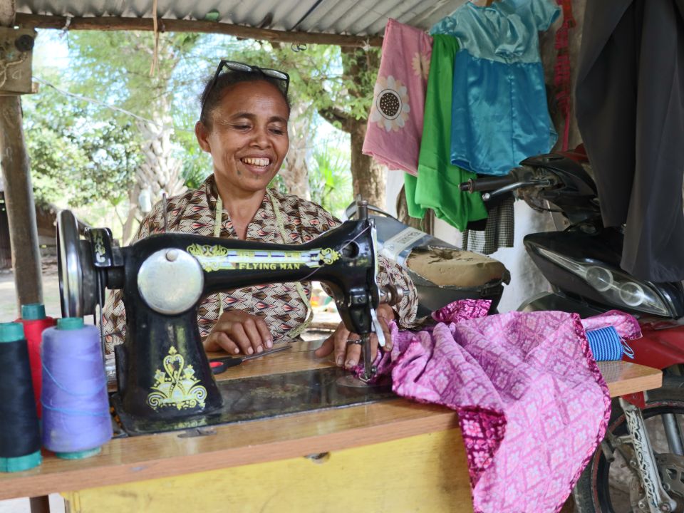 Agnes Salu, 46, lives in Bobocase, rural Timor-Leste, where she works at her sewing machine outside her home. She grew up in a small village and graduated from primary school in 1994. When her mother did not allow her to continue to secondary school, Agnes sought help from nuns who suggested she join a tailoring course.